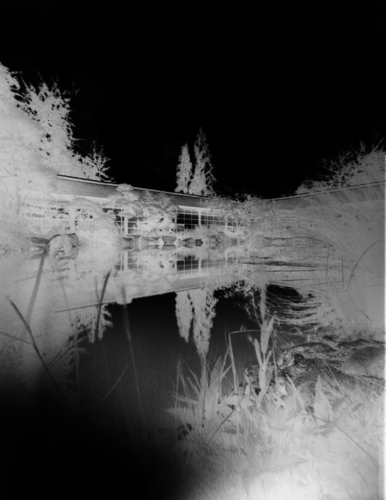 The first test indicates that the light tightness needs improvement, and I need to calibrate the exposure time. The camera is 4 inch wide, with a pinhole of 0,001 inch. The focal length is f/273, so only a small amount of light is needed!